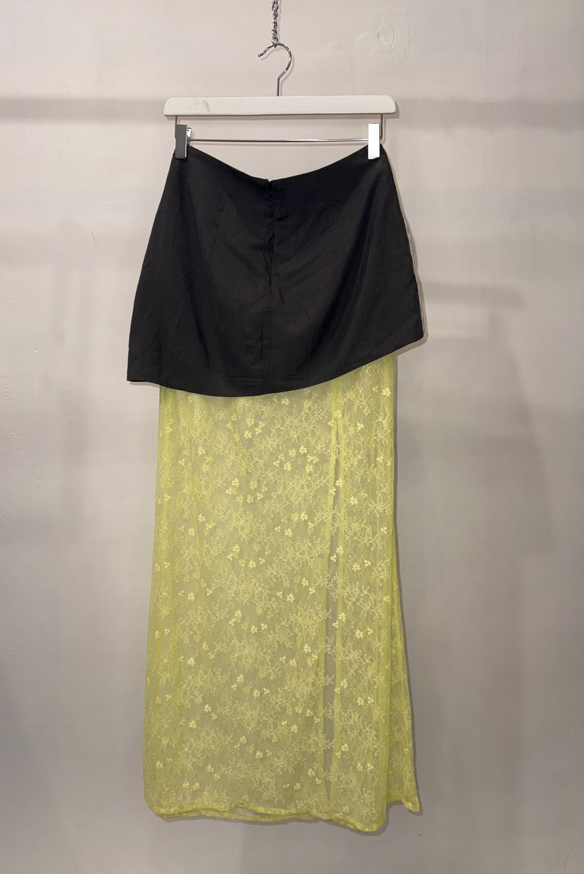 • Sous-jupe longue en dentelle synthétique, apportant transparence