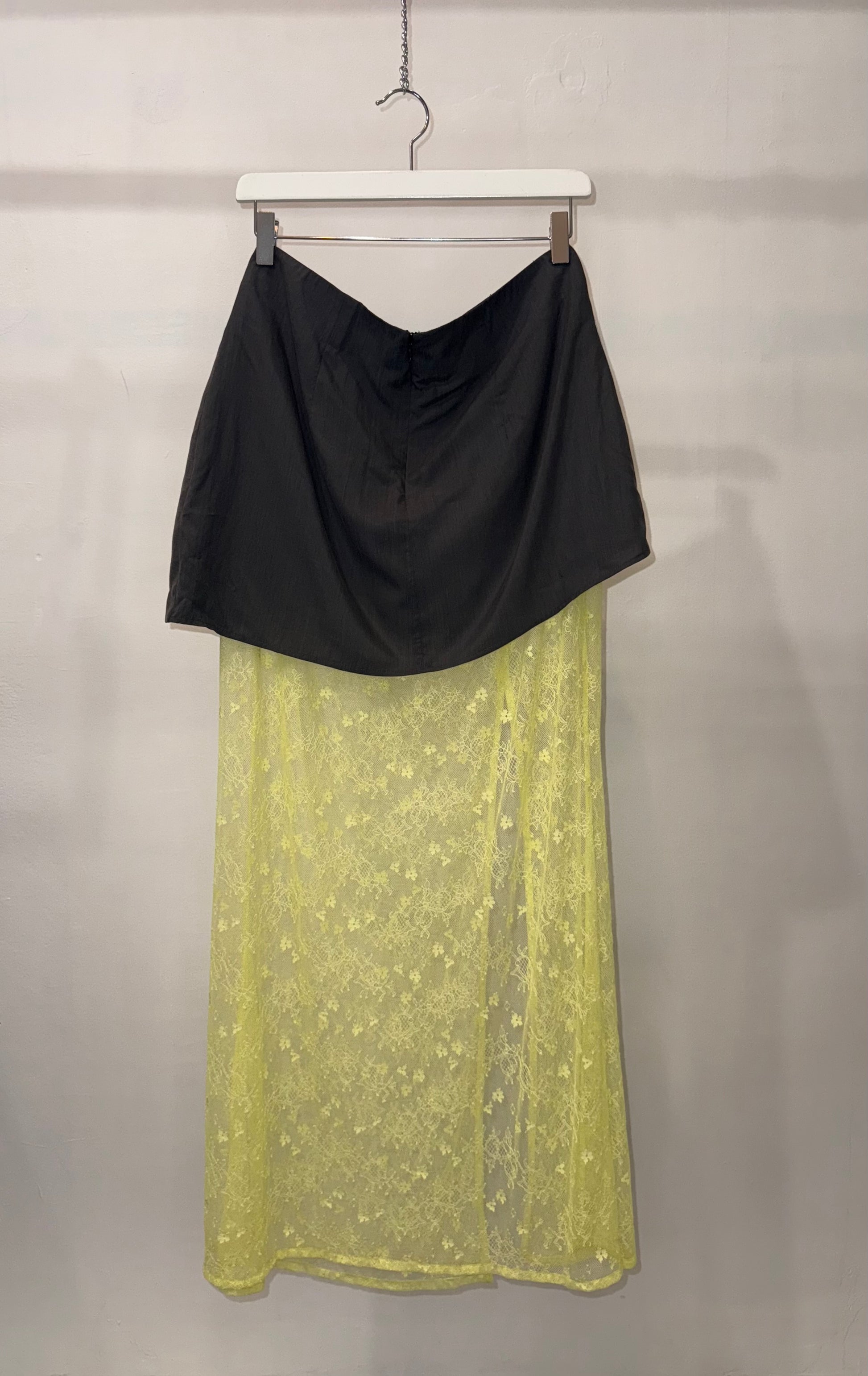 • Sous-jupe longue en dentelle synthétique, apportant transparence