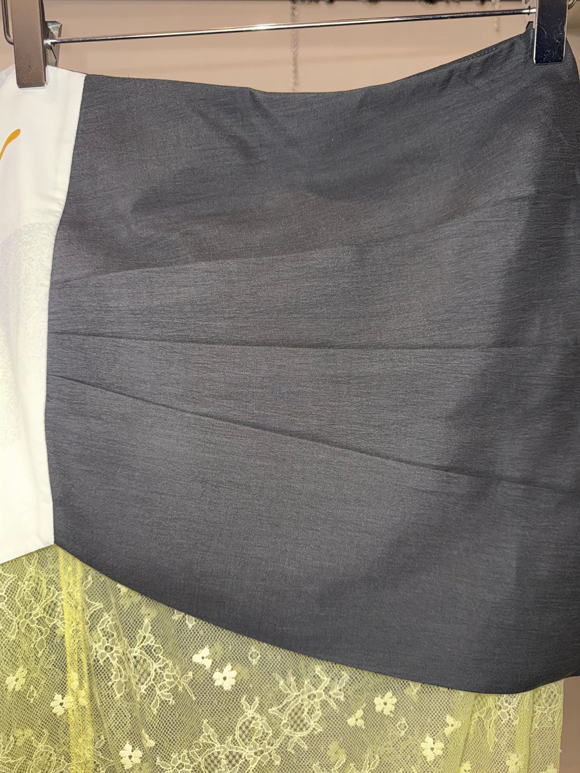 • Jupe courte en soie avec 3 pinces sur le devant pour une coupe ajustée