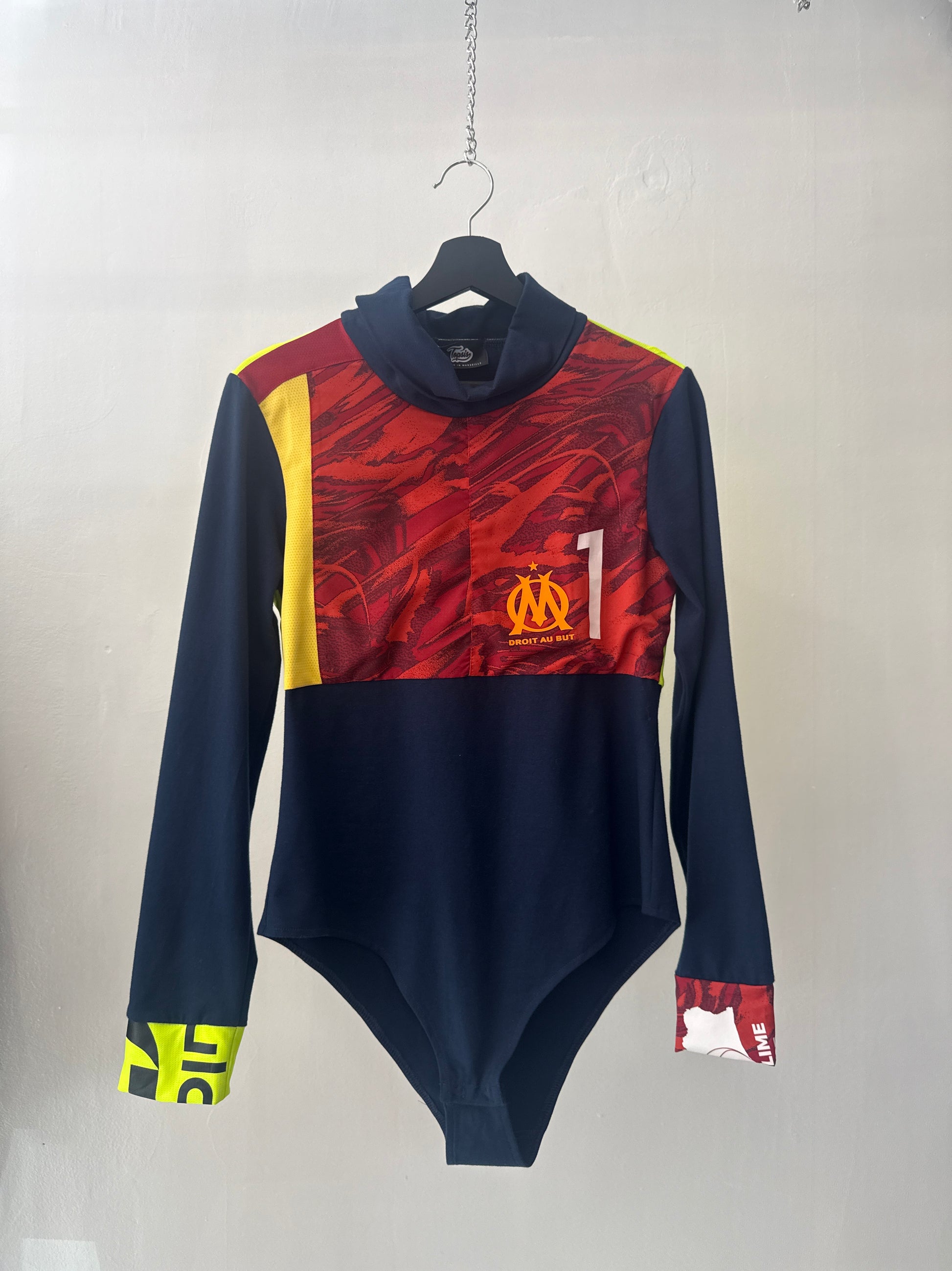 Body manche longue, empiècement maillot authentique de l’Olympique de Marseille