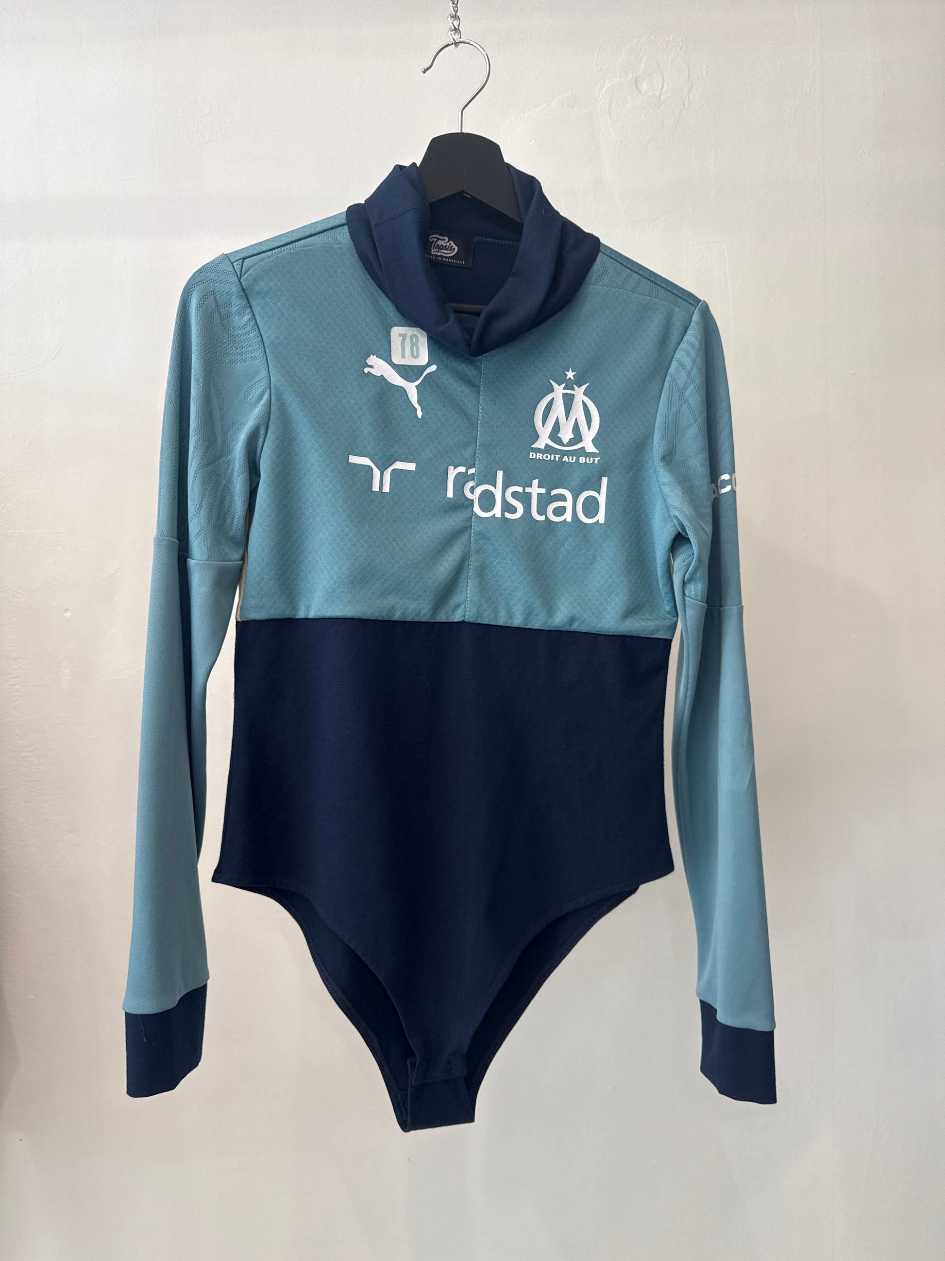 Body manche longue, empiècement maillot authentique de l’Olympique de Marseille