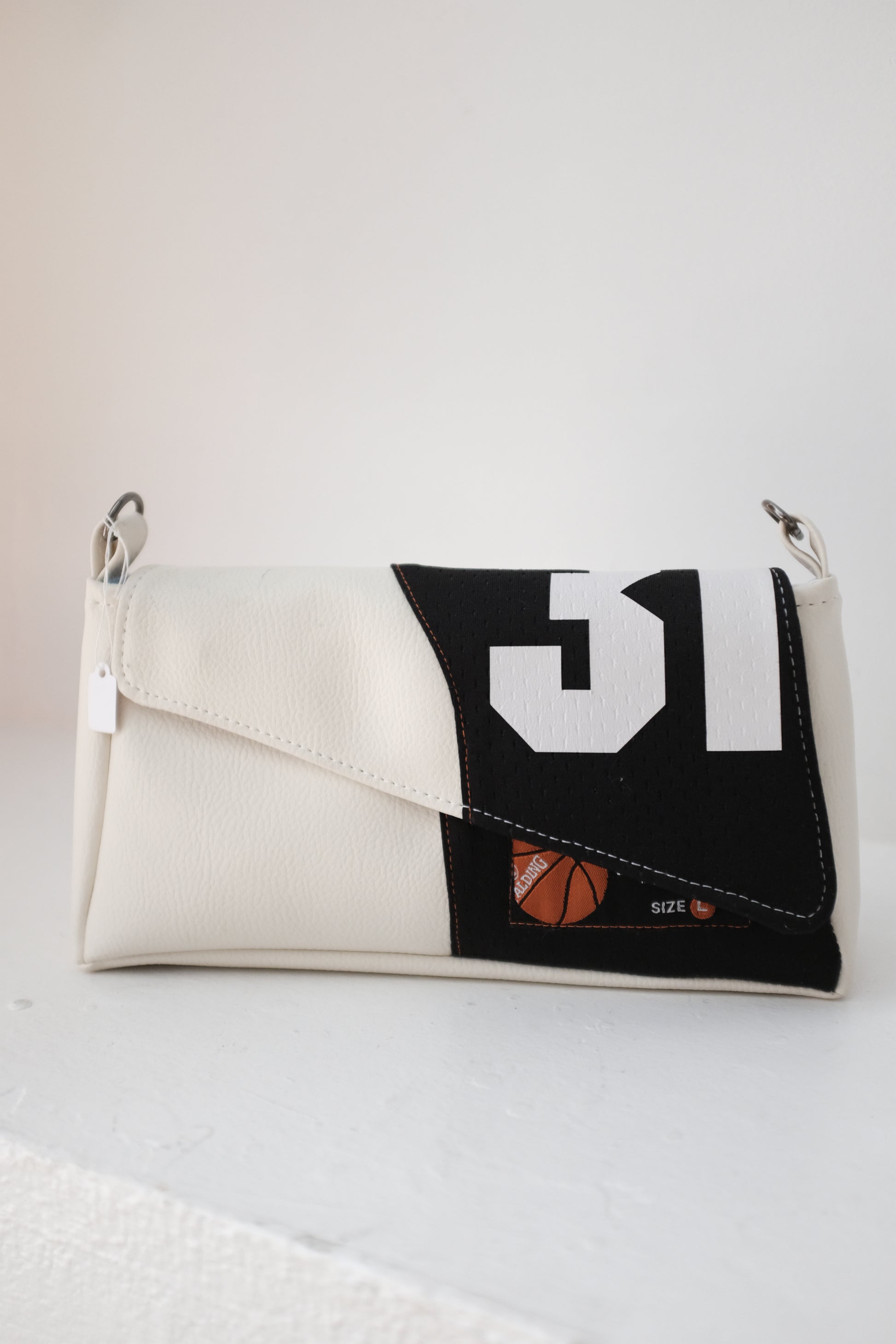 Sac pochette fabriqué à partir de simili cuir, de maillots de sport recyclés et de chutes textiles issues de nos créations.