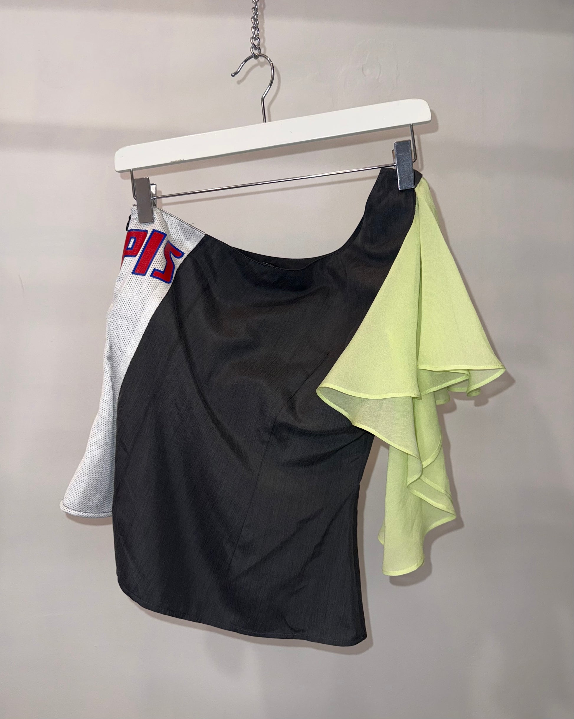 Top en soie à volant asymétrique avec empiècement maillot de basketball