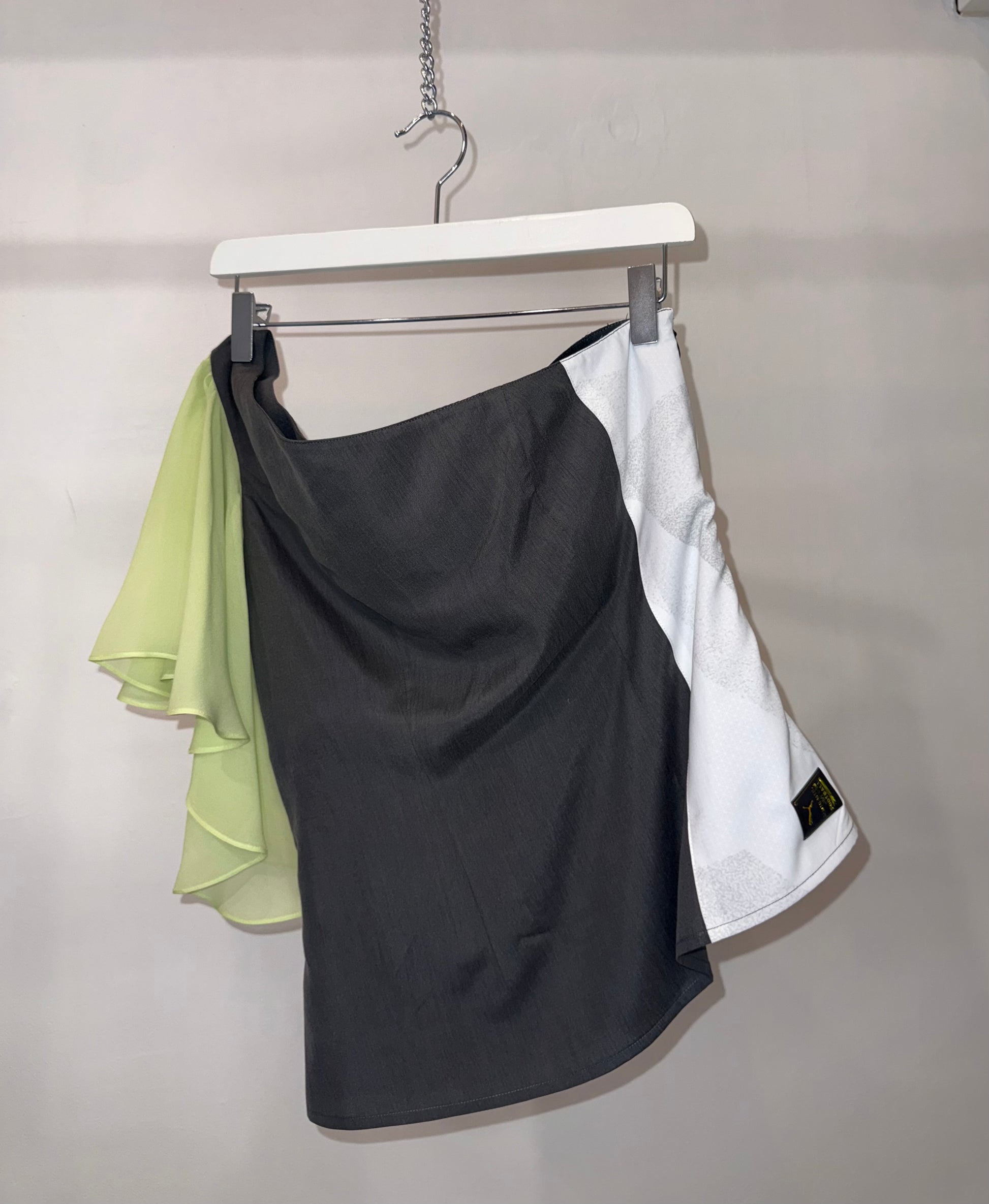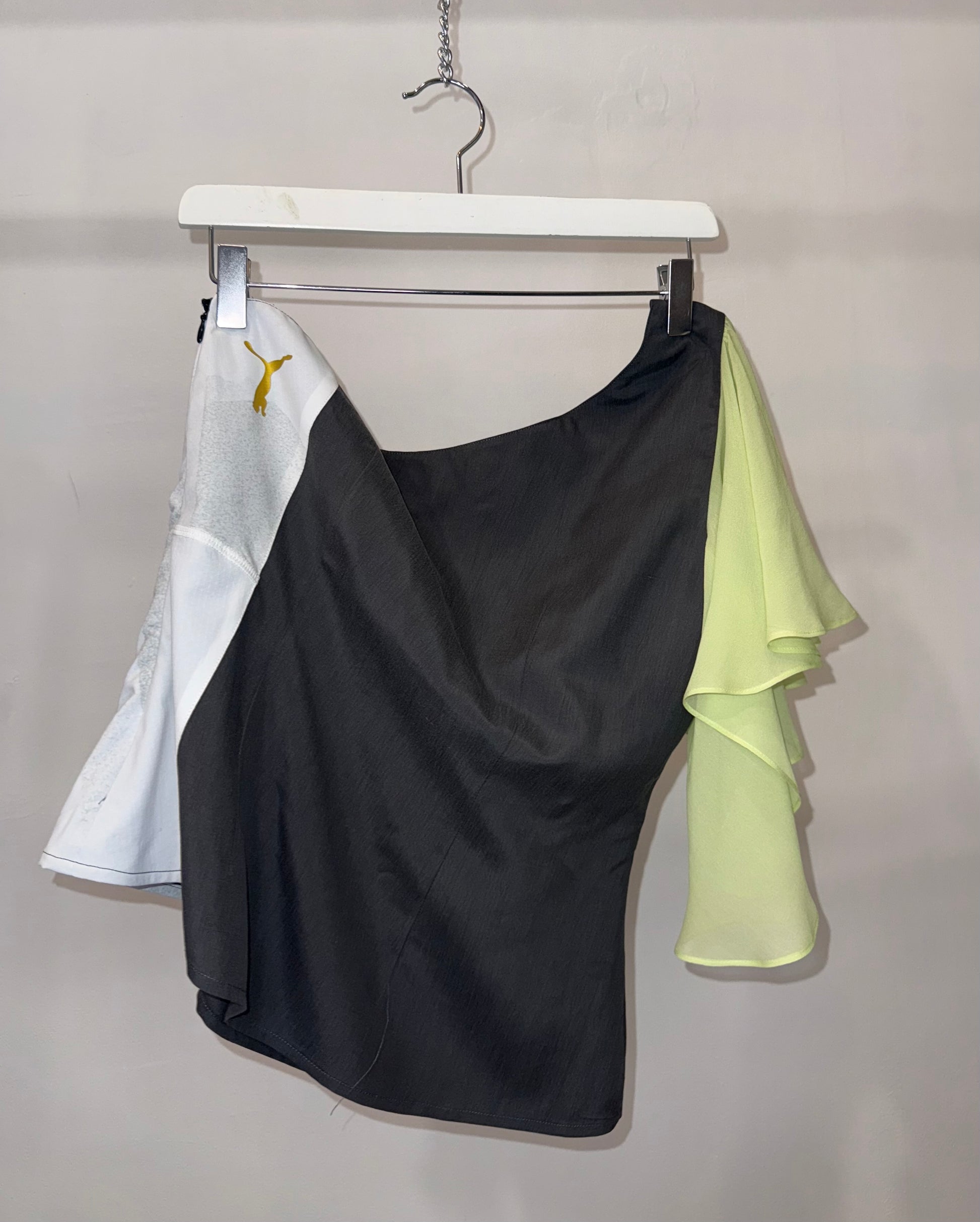 Top en soie à volant asymétrique avec empiècement maillot de l’OM